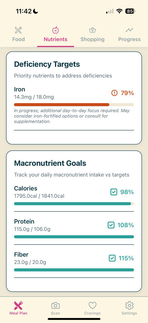 Track your progress with comprehensive nutrition analytics and deficiency targets to optimize your health.